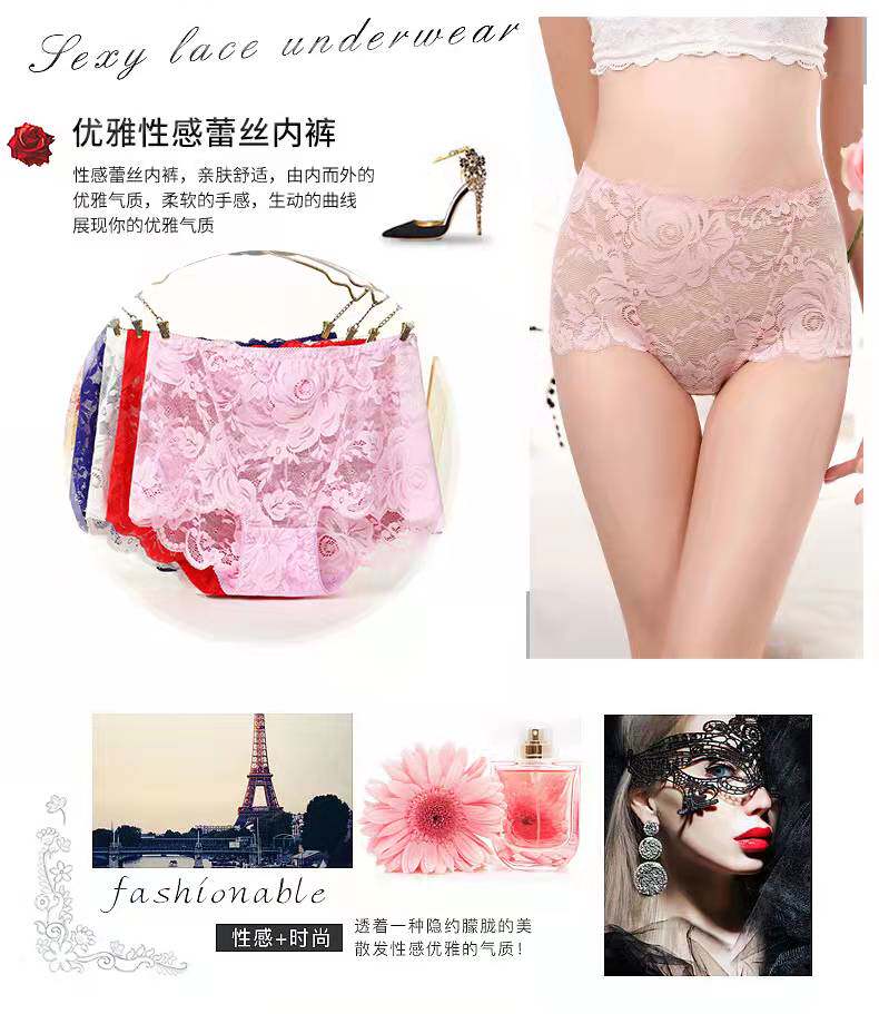 为您提供商品胖MM无感三角裤 高腰高弹网纱透气收腹女式 内裤 性感蕾丝全棉裆大码的详细介绍,