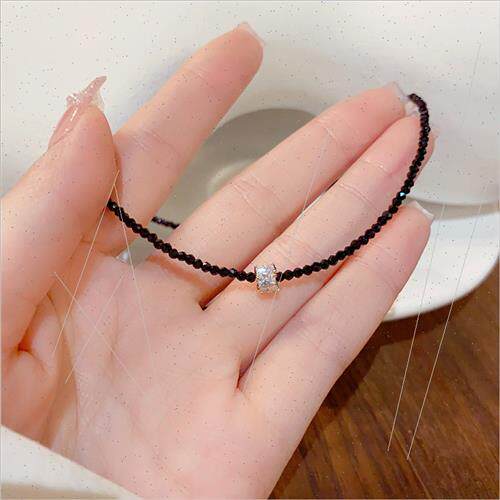 wind collarb Sweet cold zirconia cylinder crystal cool black由