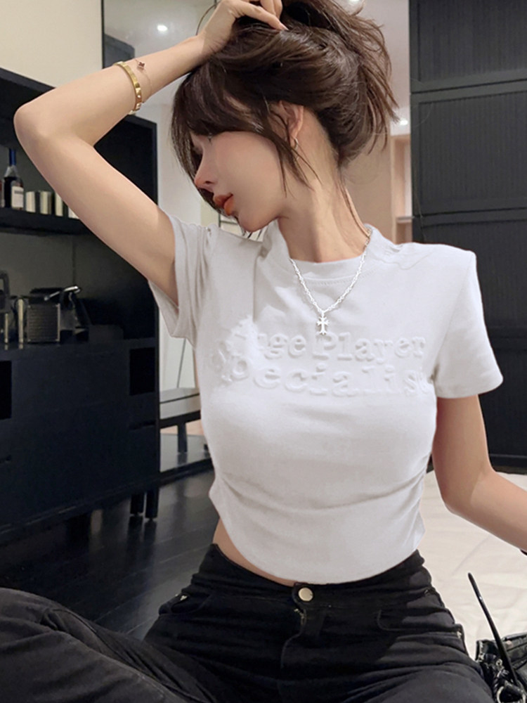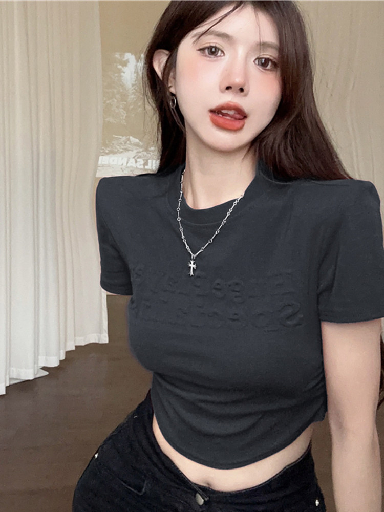 为您提供商品修身 褶皱收腰U型下摆纯棉上衣 T恤女夏季 甜辣设计感酒红色正肩短袖的详细介绍,