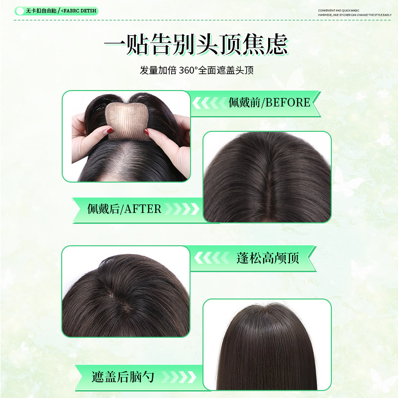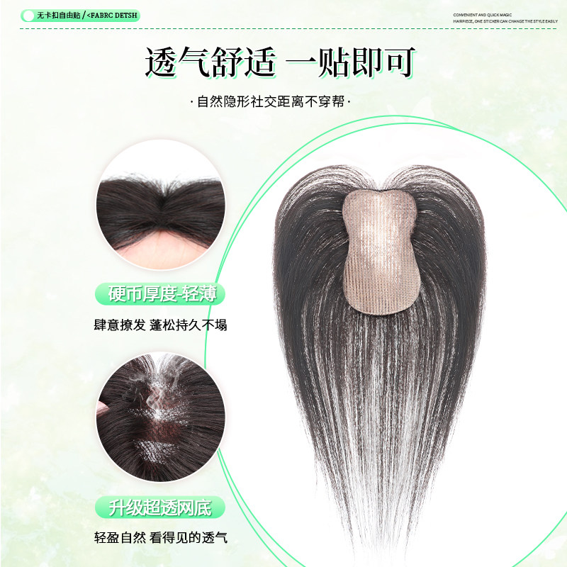 无需发卡假发女片头顶全真发刘海发缝贴增发遮白发蓬松无痕魔术贴