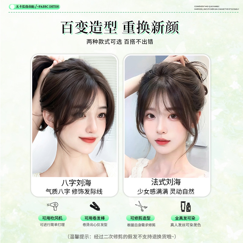 刘海假发女片头顶全真发法式 刘海片 空气假刘海自然前额无痕轻薄款