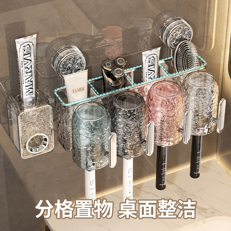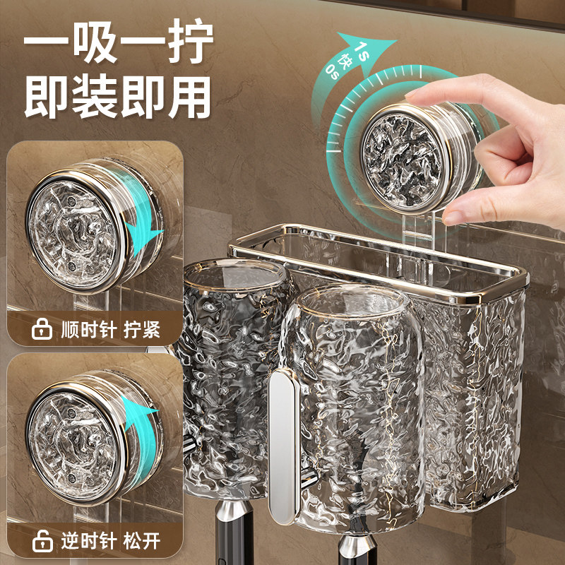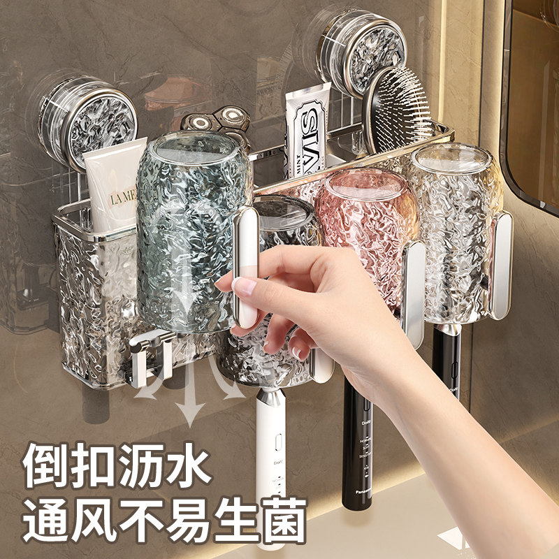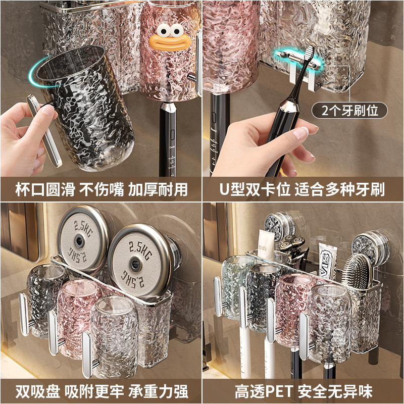 免打孔卫生间电动带把手牙杯漱口杯收纳架子 吸盘牙刷置物架壁挂式