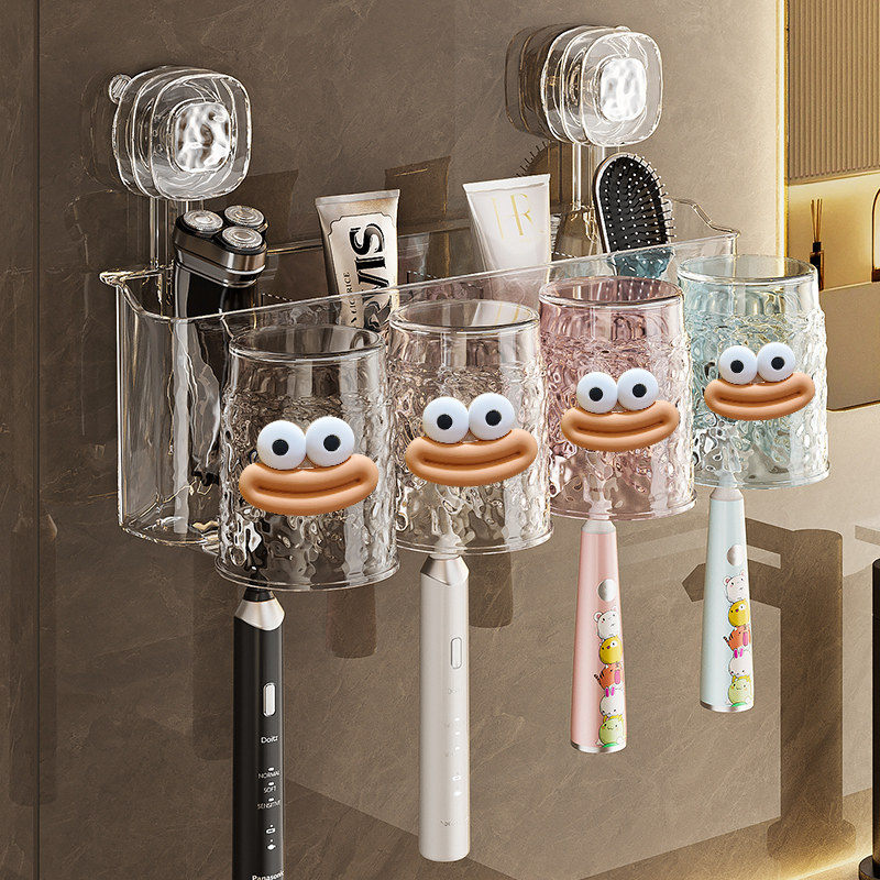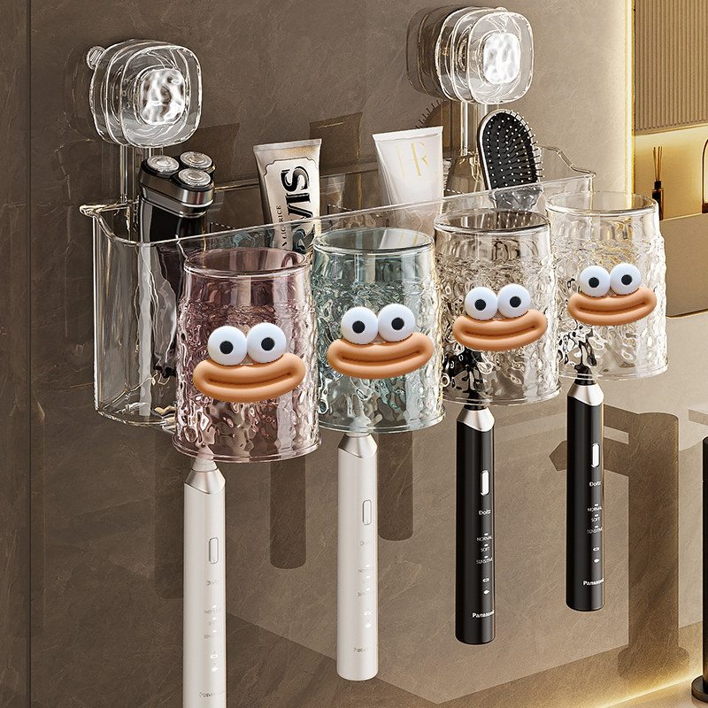 免打孔卫生间牙具座牙膏收纳浴室 牙刷牙杯壁挂置物架电动牙刷套装