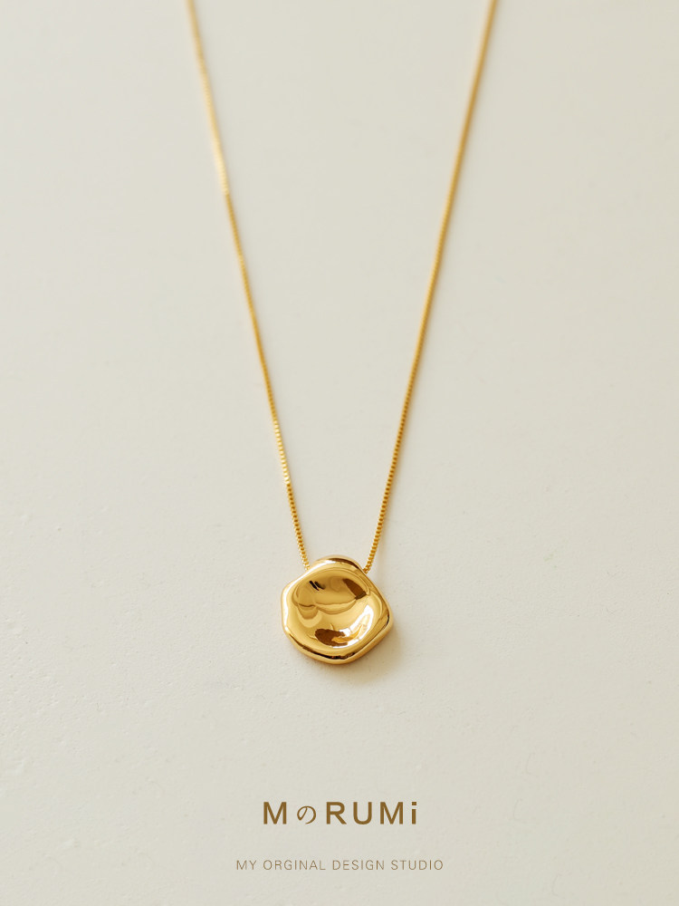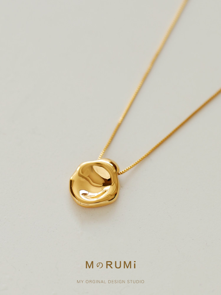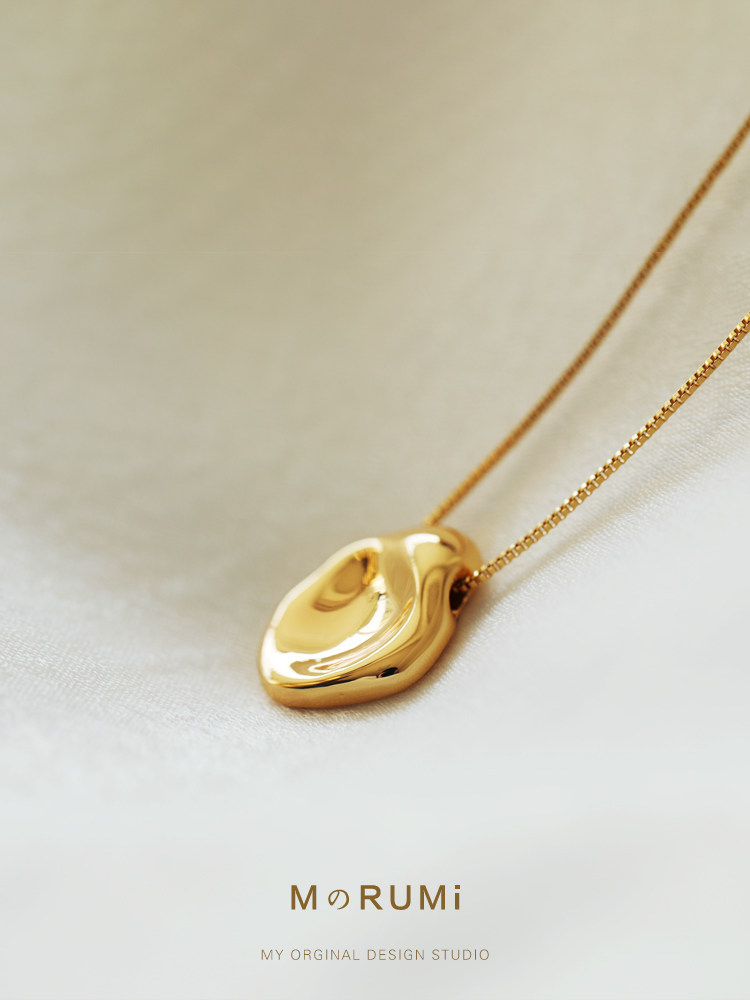 设计师轻奢钛钢镀异形金豆项链不规则熔岩高质感锁骨链 18K金法式
