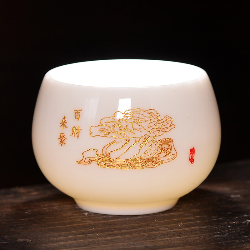 羊脂玉瓷主人杯功夫茶具八方来财陶瓷家用百家姓刻字杯罗汉杯
