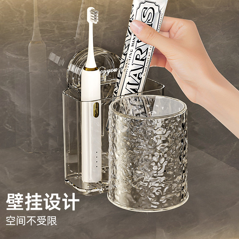 免打孔卫生间牙具座牙膏收纳浴室 牙刷牙杯壁挂置物架电动牙刷套装