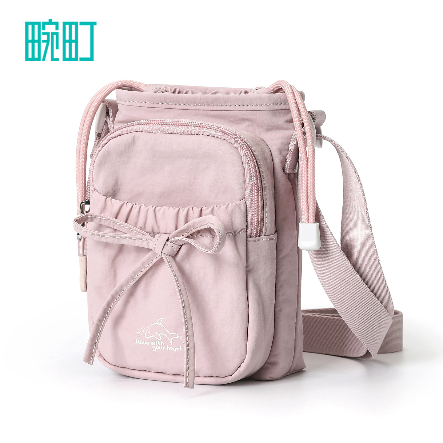畹町轻户外防泼水小包女轻便休闲水杯收纳包少女蝴蝶结斜挎手机包