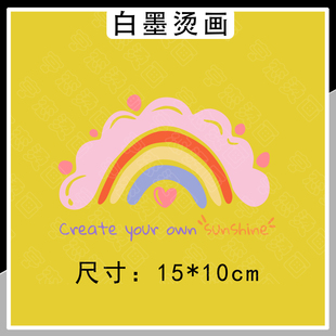 手绘粉色彩虹爱心英文图案热转印T恤帆布包印花贴高弹白墨烫画贴