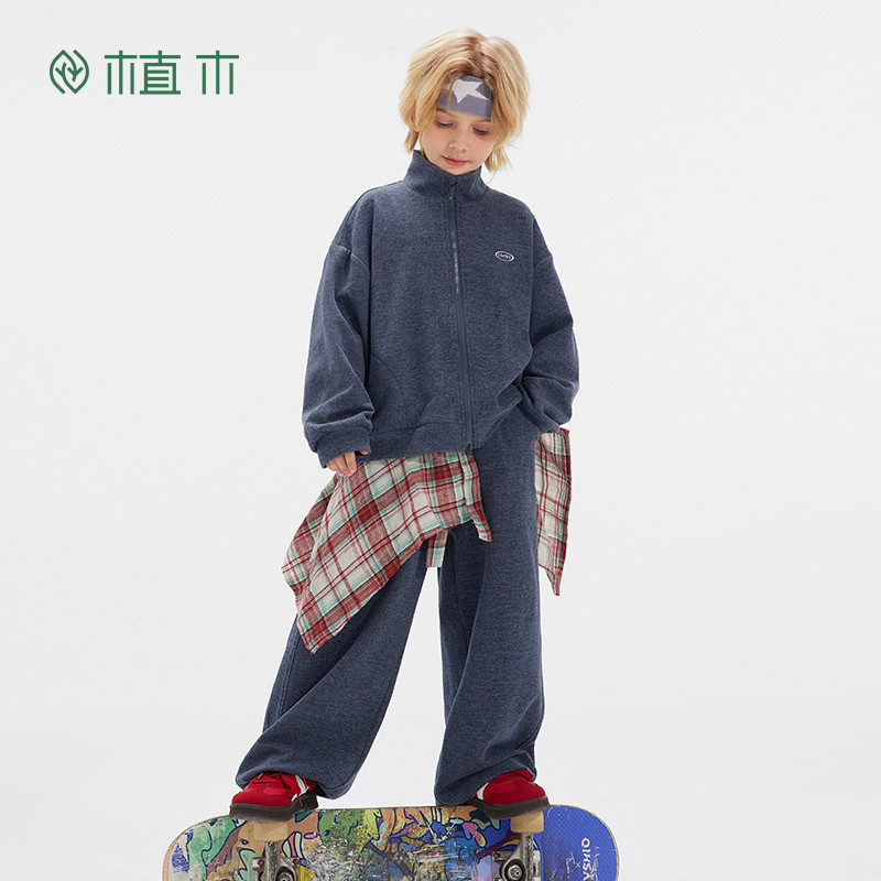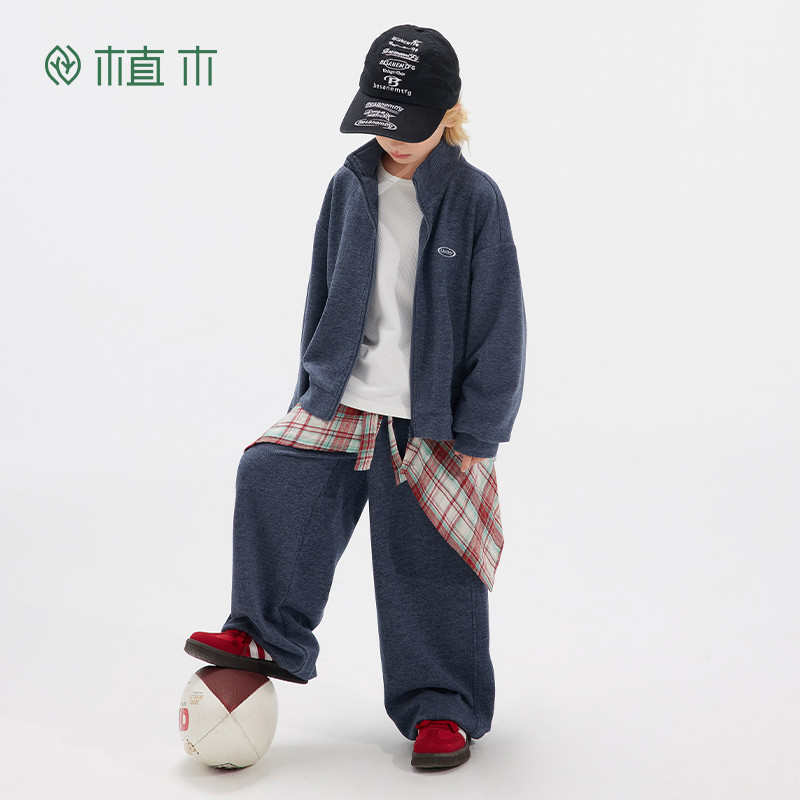 童装 植木 男童套装 中大童针织立领休闲套装 儿童套装 2026春新款