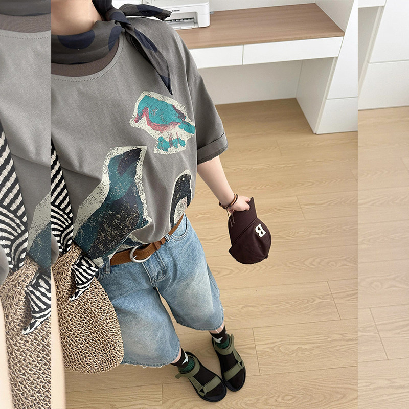韩系ootd穿搭一整套女2026夏季 t恤牛仔七分裤 休闲套装 松弛感短袖