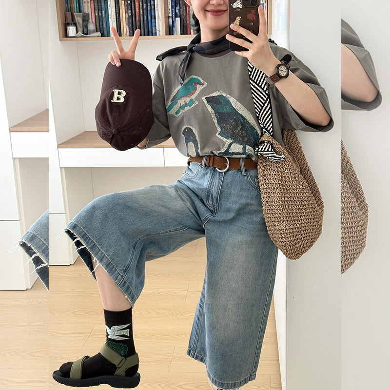 为您提供商品韩系ootd穿搭一整套女2026夏季 t恤牛仔七分裤 休闲套装 松弛感短袖的详细介绍,