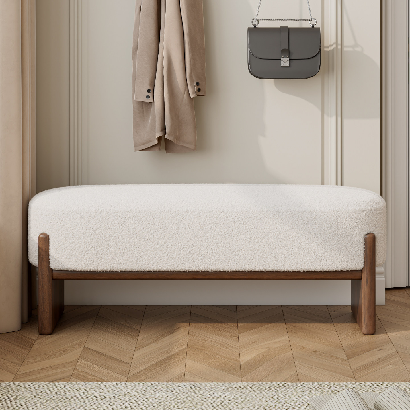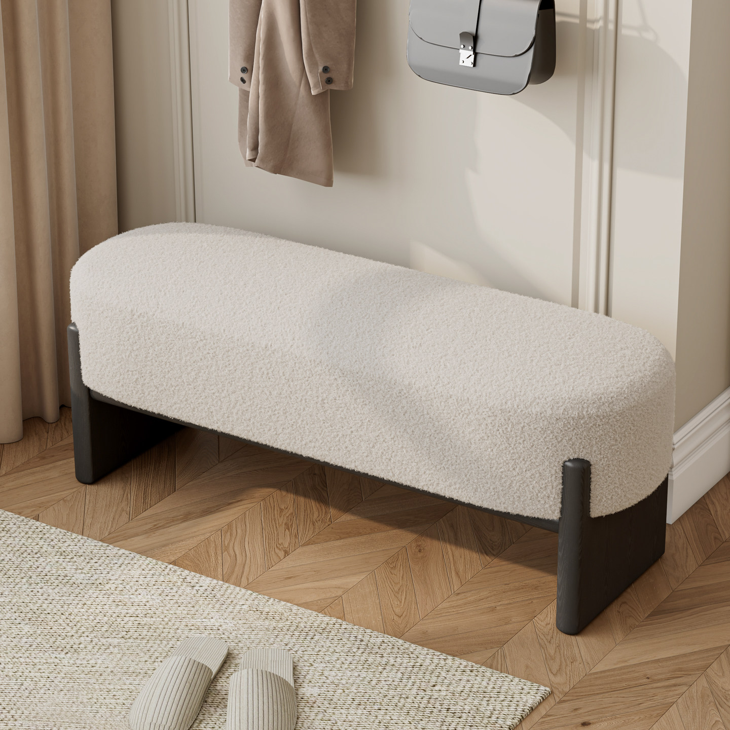 为您提供商品羊羔绒换鞋 玄关凳 凳门口家用实木长条凳入户门轻奢高级感坐垫意式的详细介绍,