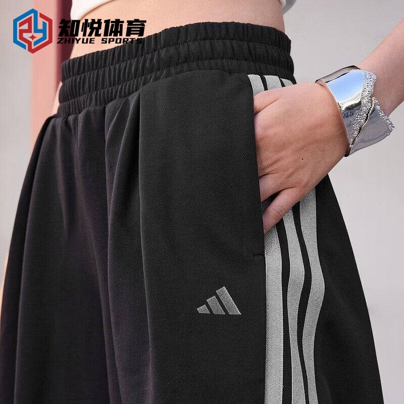 阿迪达斯运动裤 透气KR7594 KR7593 KS2897 女黑色宽松阔腿休闲长裤