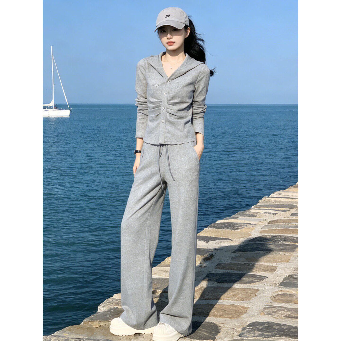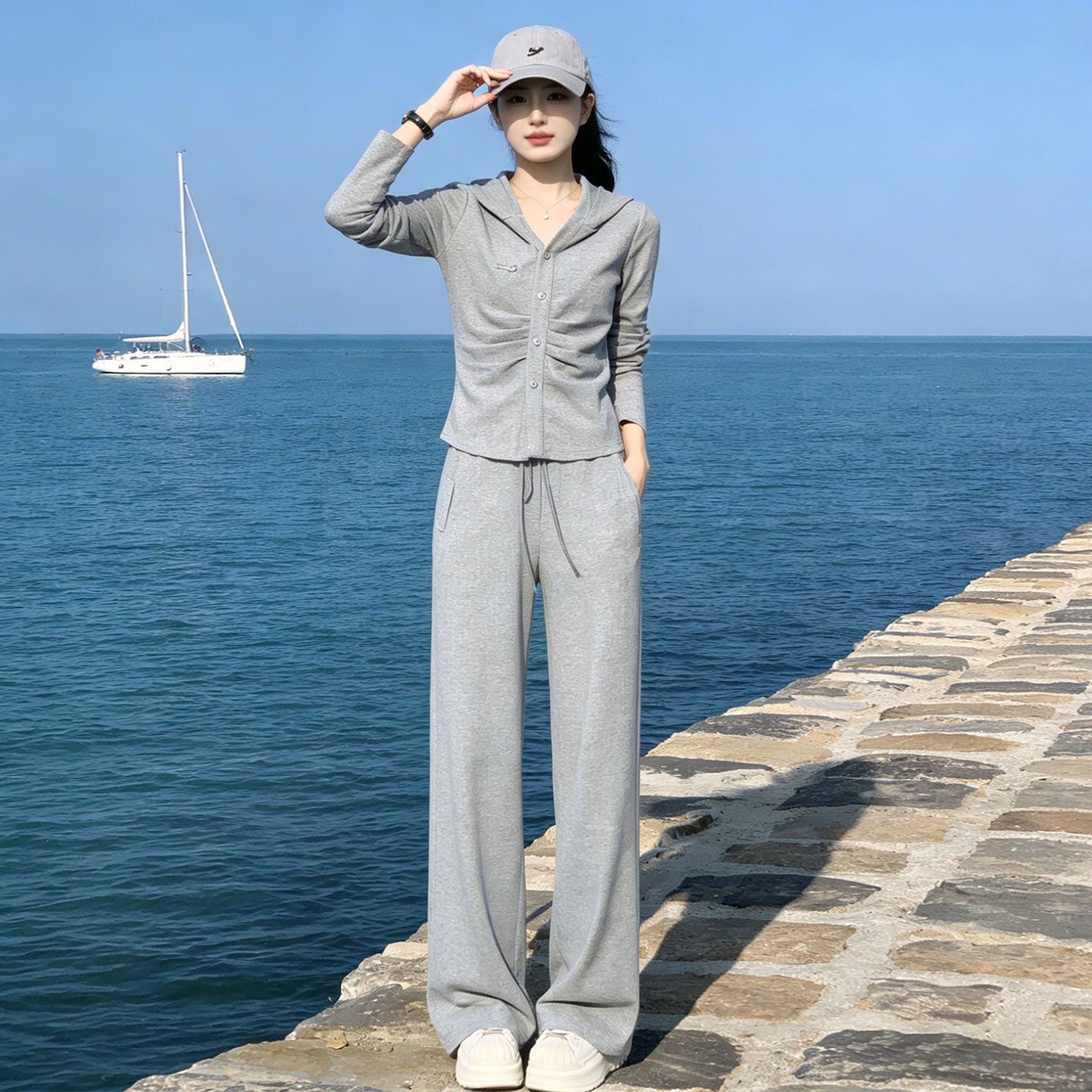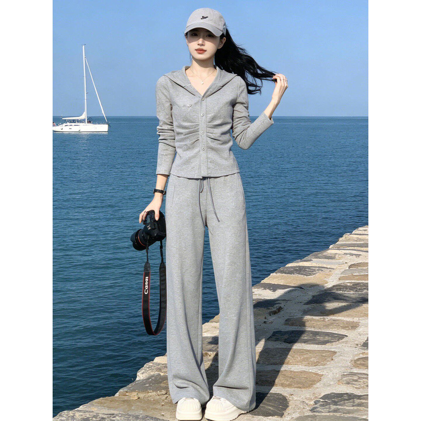 女运动休闲通勤慵懒时尚 2026春款 套装 两件套长袖 百搭阔腿裤