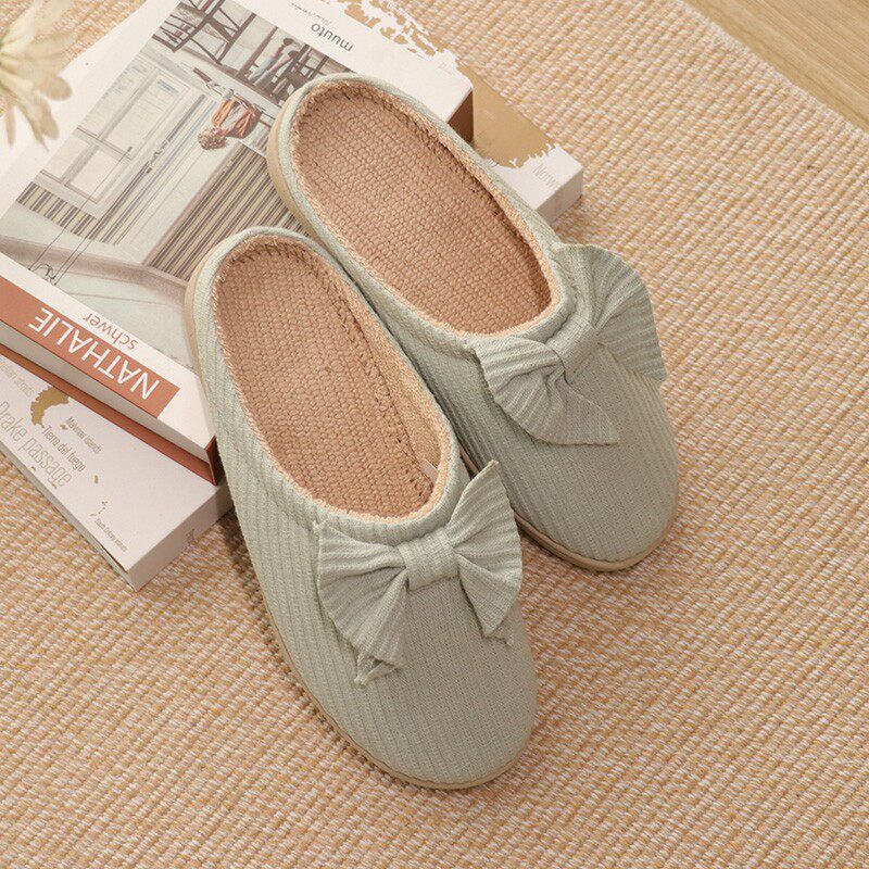 女春秋款 吸汗脚亚麻卡通可爱办公室内居家地板 通用棉麻布拖鞋 四季