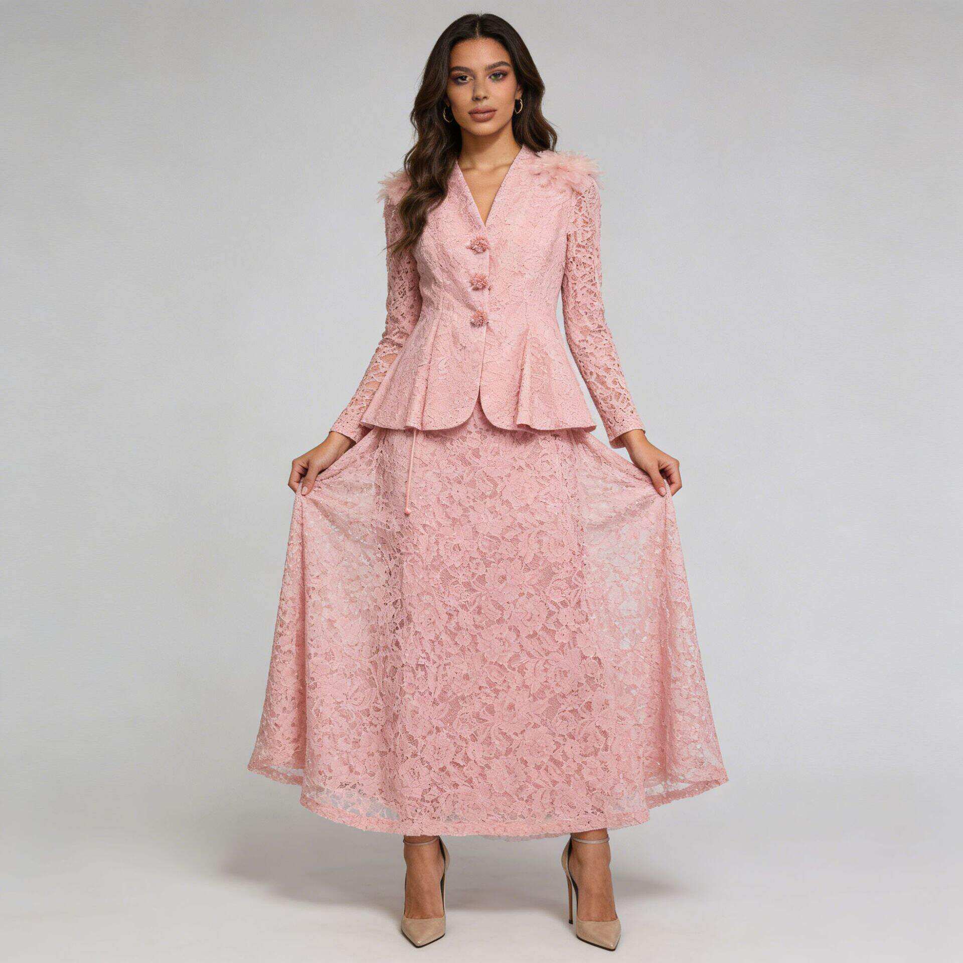 为您提供商品长裙两件套洋气2026套装 新款 法式 气质优雅风蕾丝御姐重工开衫 女装的详细介绍,