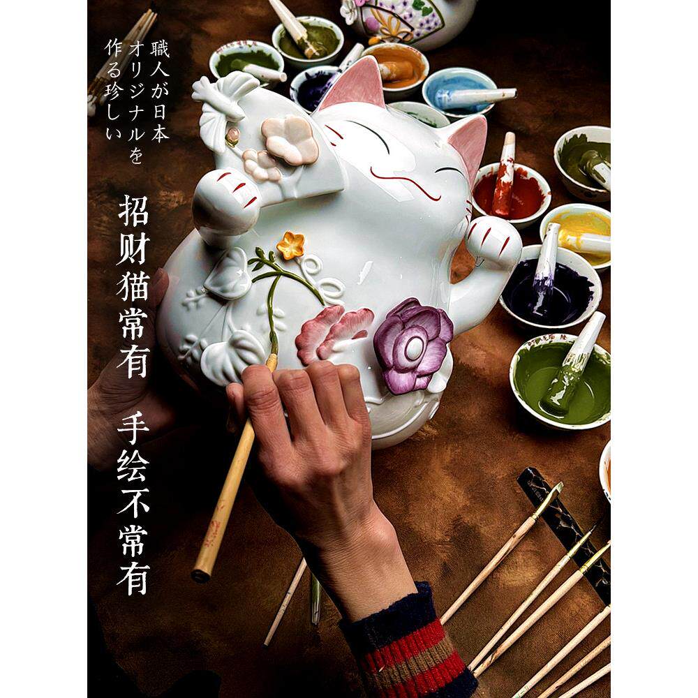 饰高级感小众 牡丹大号招财猫摆件开业礼物前台入户玄关柜子客厅装