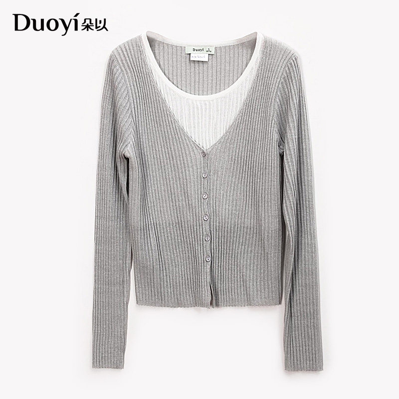 灰色长袖 朵以2026春装 上衣 优雅撞色拼接显瘦修身 女法式 新款 针织衫由