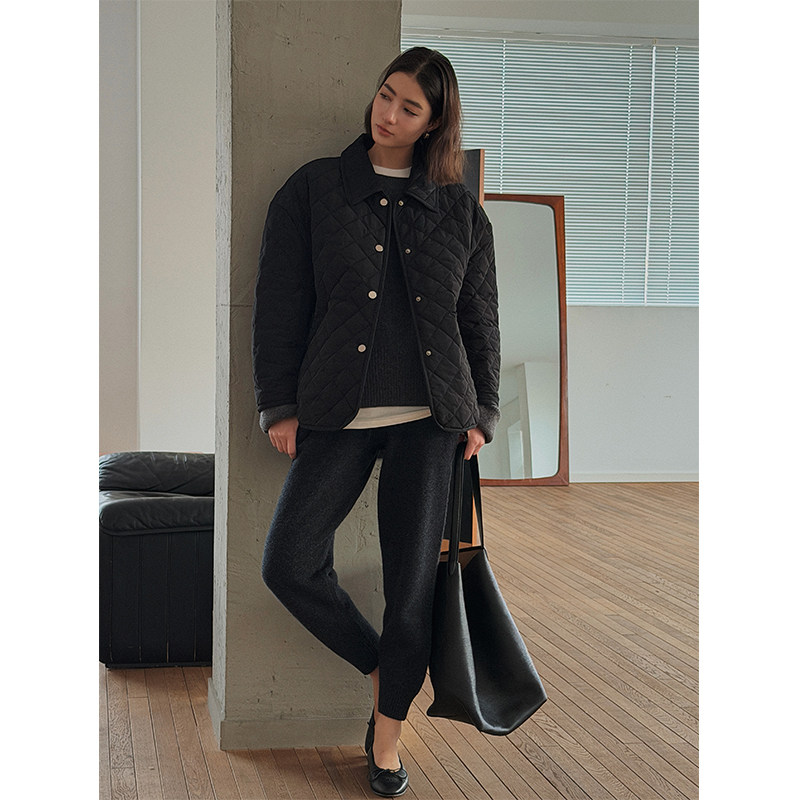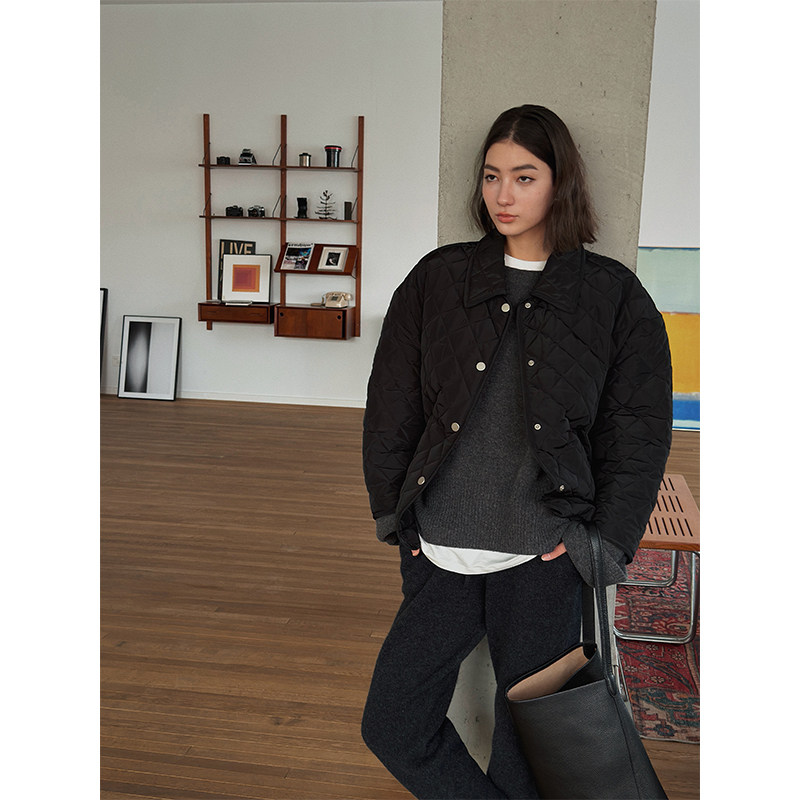 新款 短外套 简奢风菱形格绗棉小方领廓形复古棉服棉袄冬季 SOTHEA由