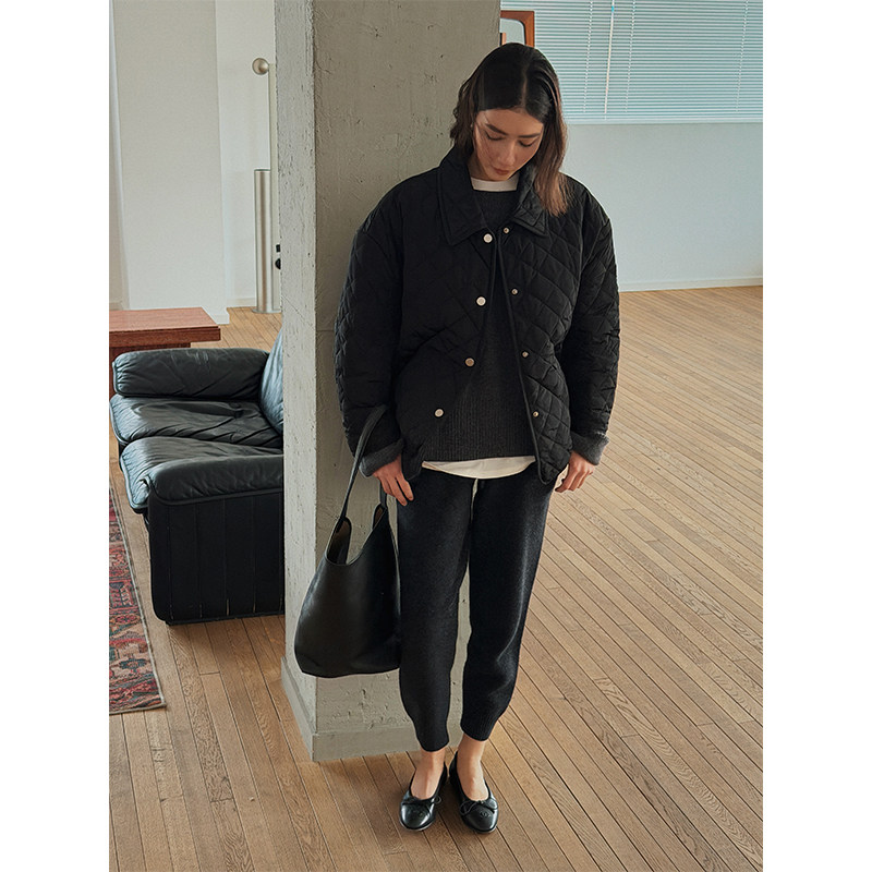 新款 短外套 简奢风菱形格绗棉小方领廓形复古棉服棉袄冬季 SOTHEA