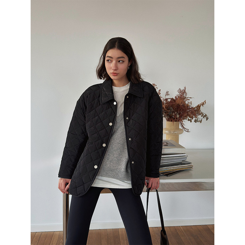 2025春秋翻领洋气短款 轻薄妈妈棉袄短外套 棉衣菱格中青年棉服修身