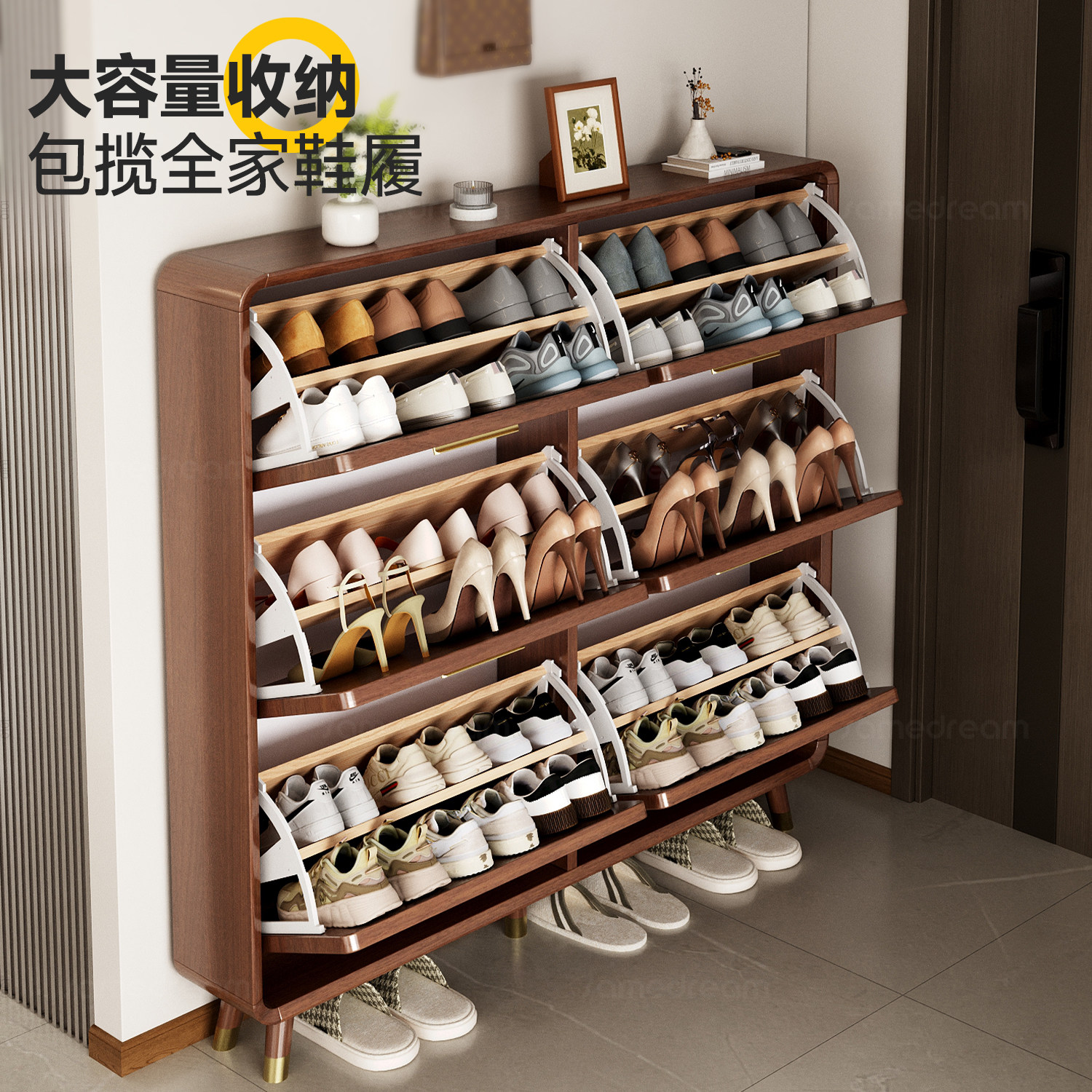 三梦实木超薄鞋 架 柜家用入户门口小窄门外走廊用楼道外极窄翻斗鞋