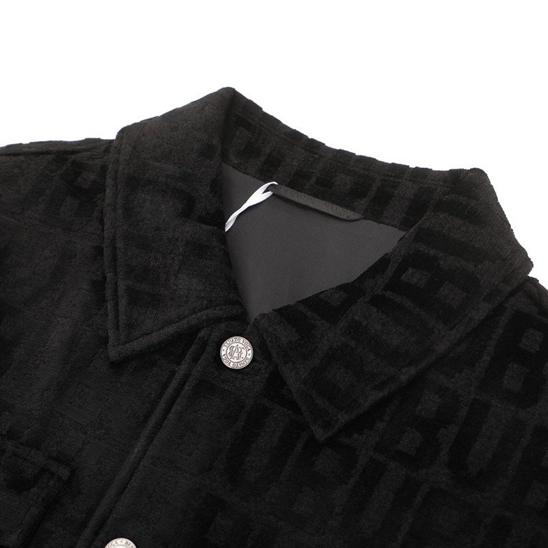 宾度男装 男士 轻奢独家字母元 素提花植绒翻领黑色夹克外套 春秋季