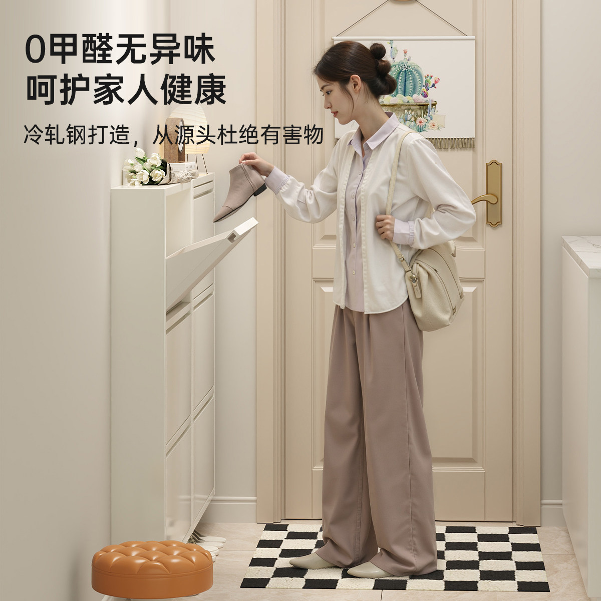 柜家用门口小窄入户门楼道外走廊钢制翻斗鞋 架 鞋 三梦极窄超薄整装由