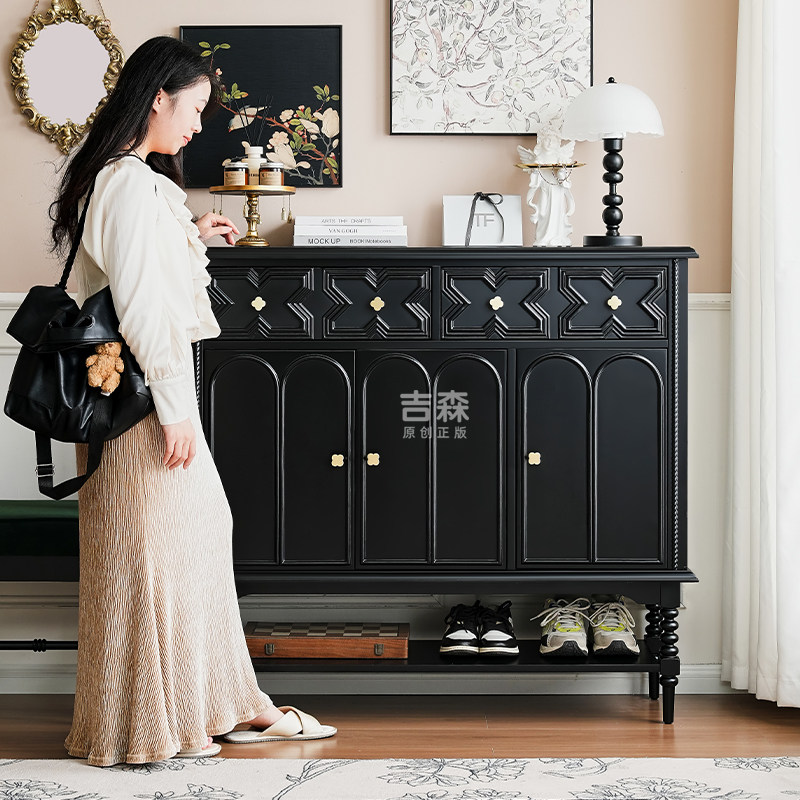 为您提供商品柜家用门口入户收纳柜一体靠墙大容量多层超大鞋 架 实木玄关鞋 法式的详细介绍,