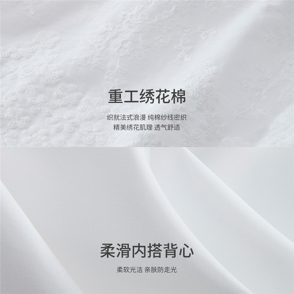 设计师款 配吊带绣花宽松V领七分袖 白色衬衫 女18346703 佐丹奴新款由