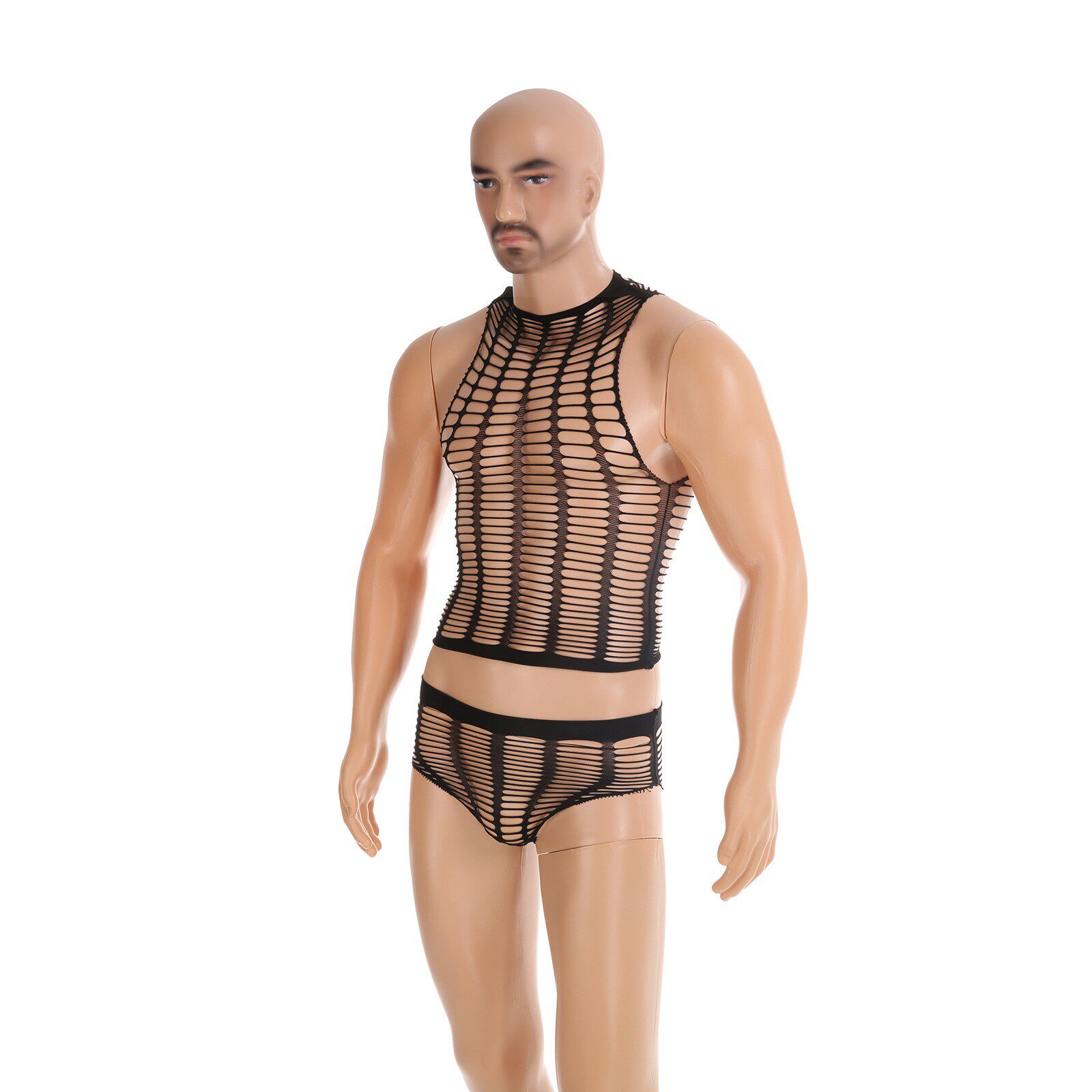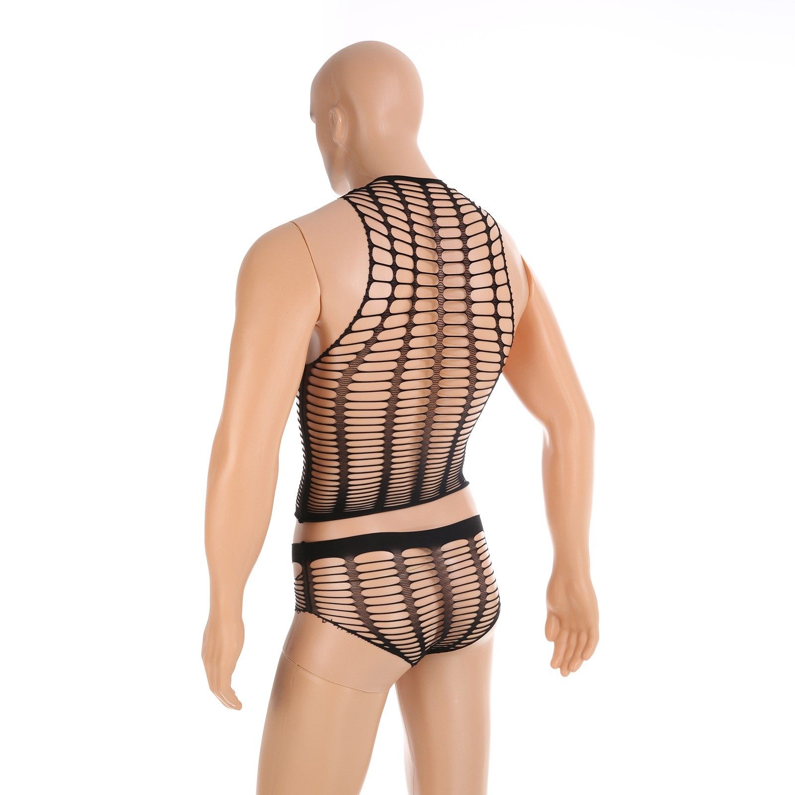 性感透视渔网塑身透明夜店酒吧表演服青年内衣睡衣黑色紧身潮 男士由