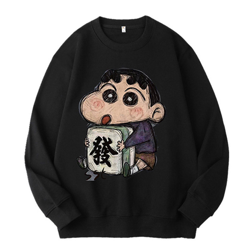 安踏休闲针织卫衣男女同款 新款 黑色圆领加绒长袖 情侣运动上衣 春季