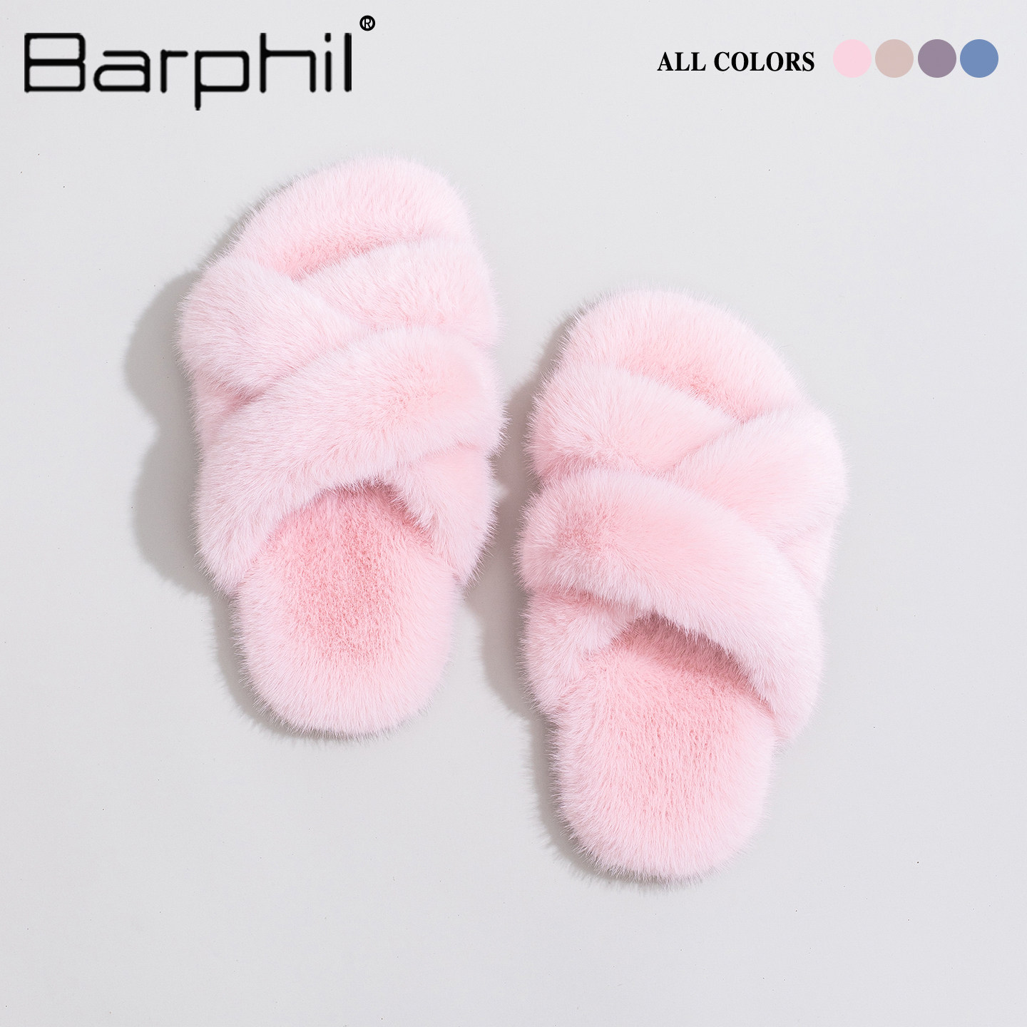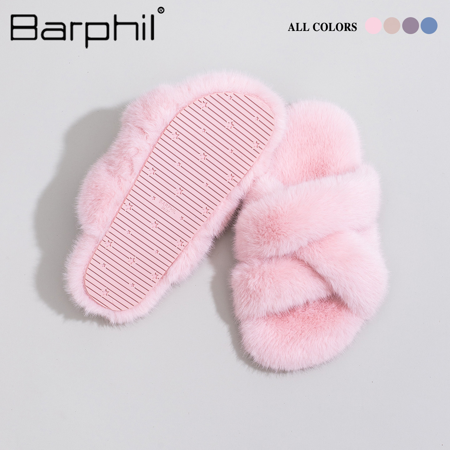 Barphil棉拖鞋 秋冬季 室内家居防滑毛绒露趾时尚 网红 女士2026新款