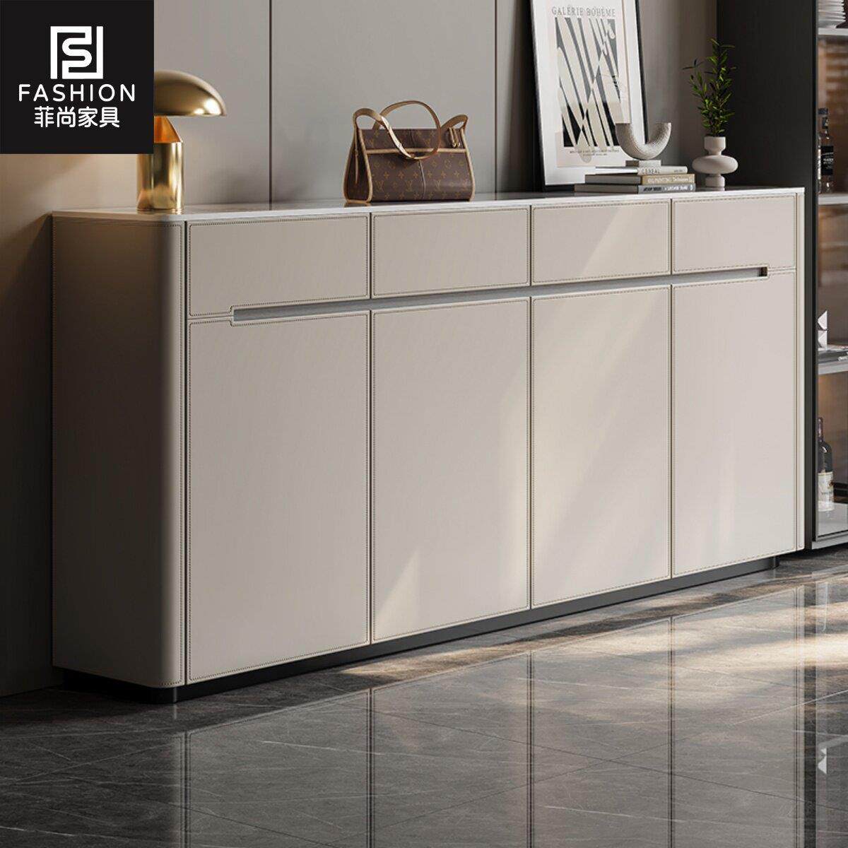 柜现代家用门口入户门门厅柜实木隔断柜马鞍皮大容量鞋 极简鞋 意式