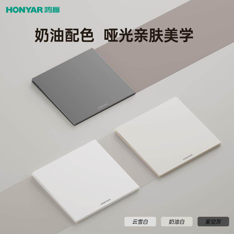 鸿雁X5超薄哑光暗装 开关插座面板86型空调一二开套装 国补15%