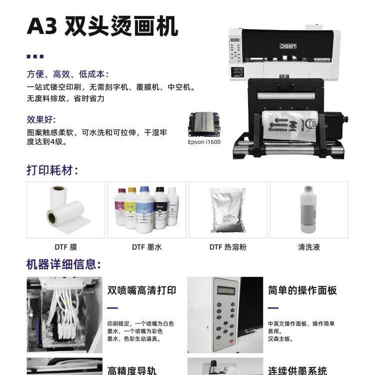 印花数码 彩色T恤数码 白墨烫画打印机 printer dtf 打印机 柯式