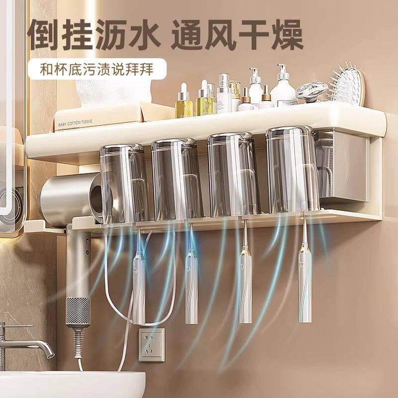 牙膏架卫生间收纳神器 牙刷置物架免打孔漱口杯电动牙刷情侣壁挂式