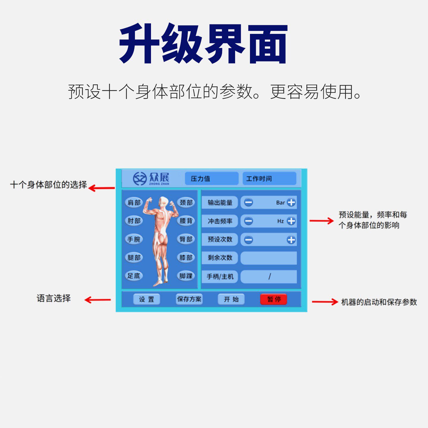 为您提供商品家用缓解痛点按摩理疗机 康之霸ESKZB双手柄冲击波机器气动弹道式的详细介绍,