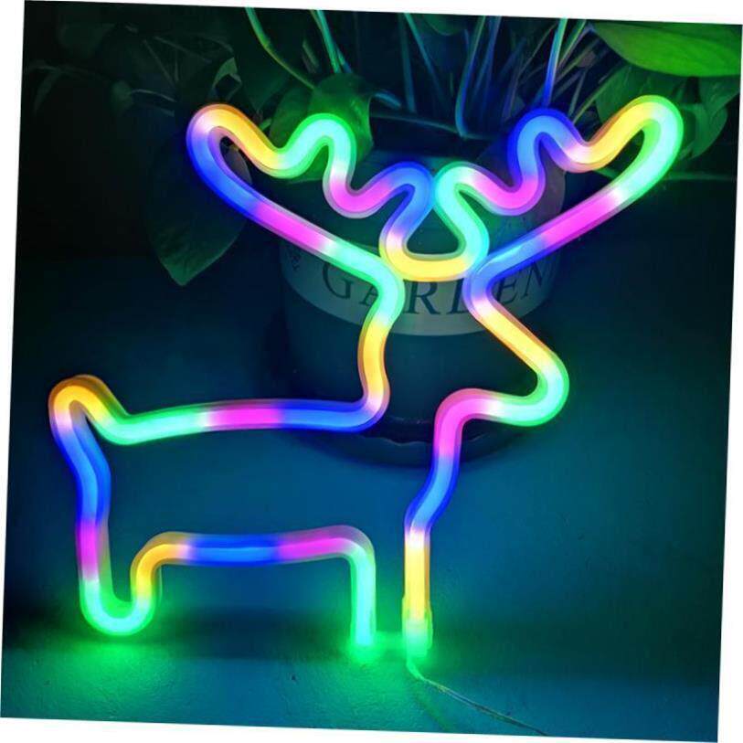 Christmas Light Elk Bell Sign Deer Neon LED Decoration Love