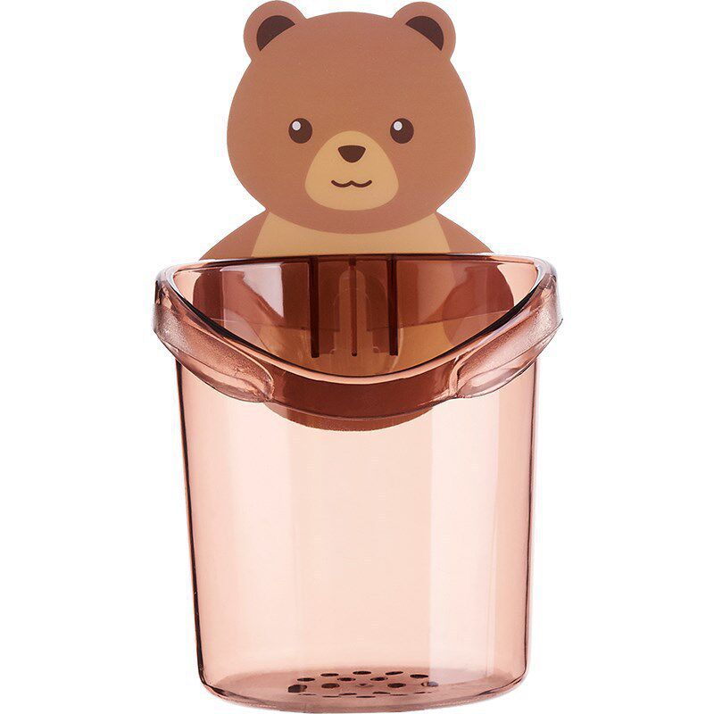 沥水小熊置物杯 卫生间小熊抱抱牙刷杯牙膏收纳架浴室免打孔壁挂式