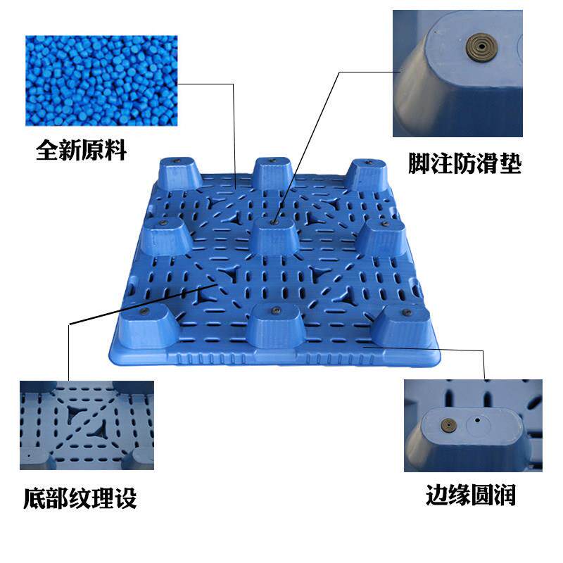 为您提供商品吹塑九脚塑料托盘叉车板仓库用垫板物流货架地台卡板地仓栈板防潮的详细介绍,