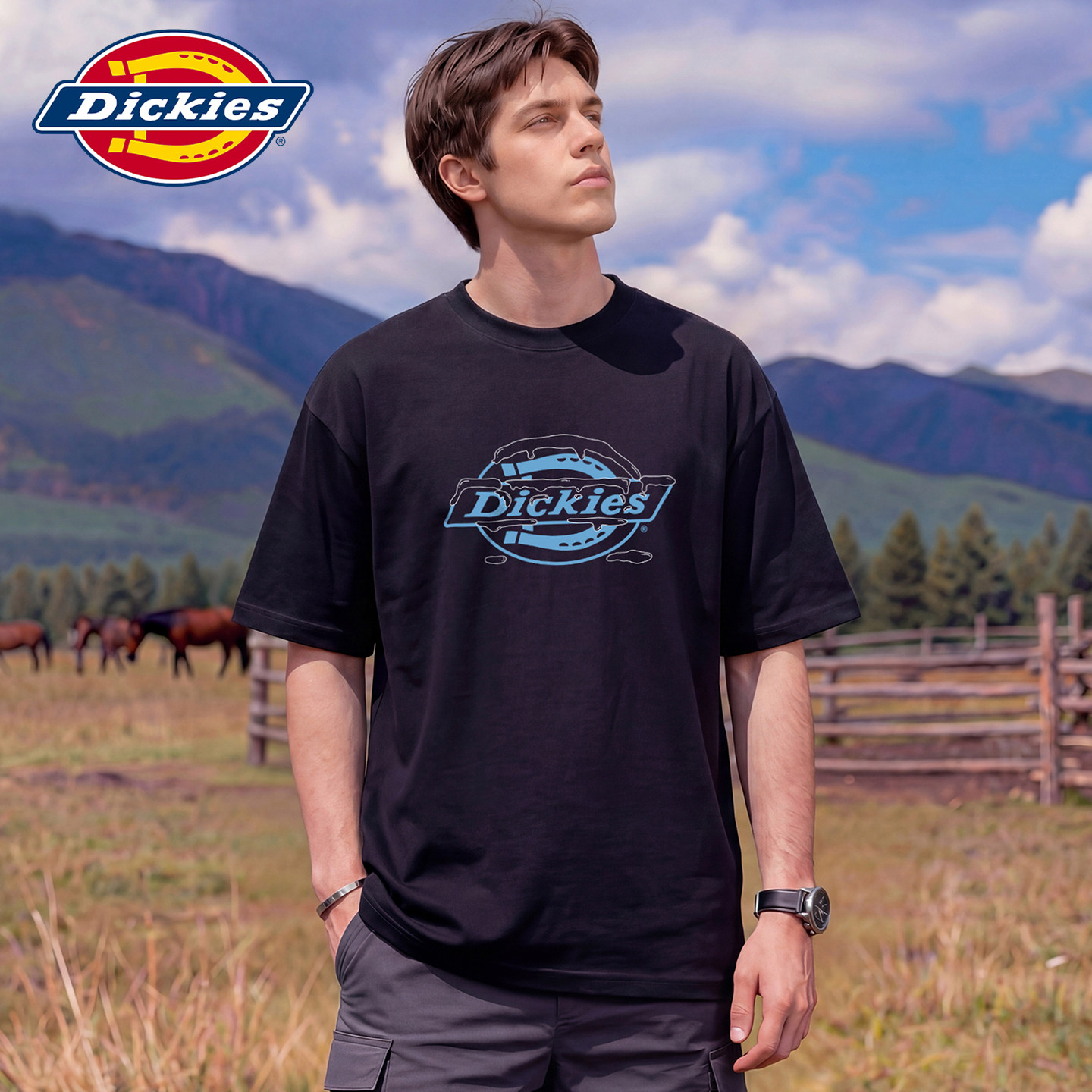 印花五分袖 Dickies帝酷适夏季 透气上衣Y 美式 T恤男士 新款 纯棉短袖