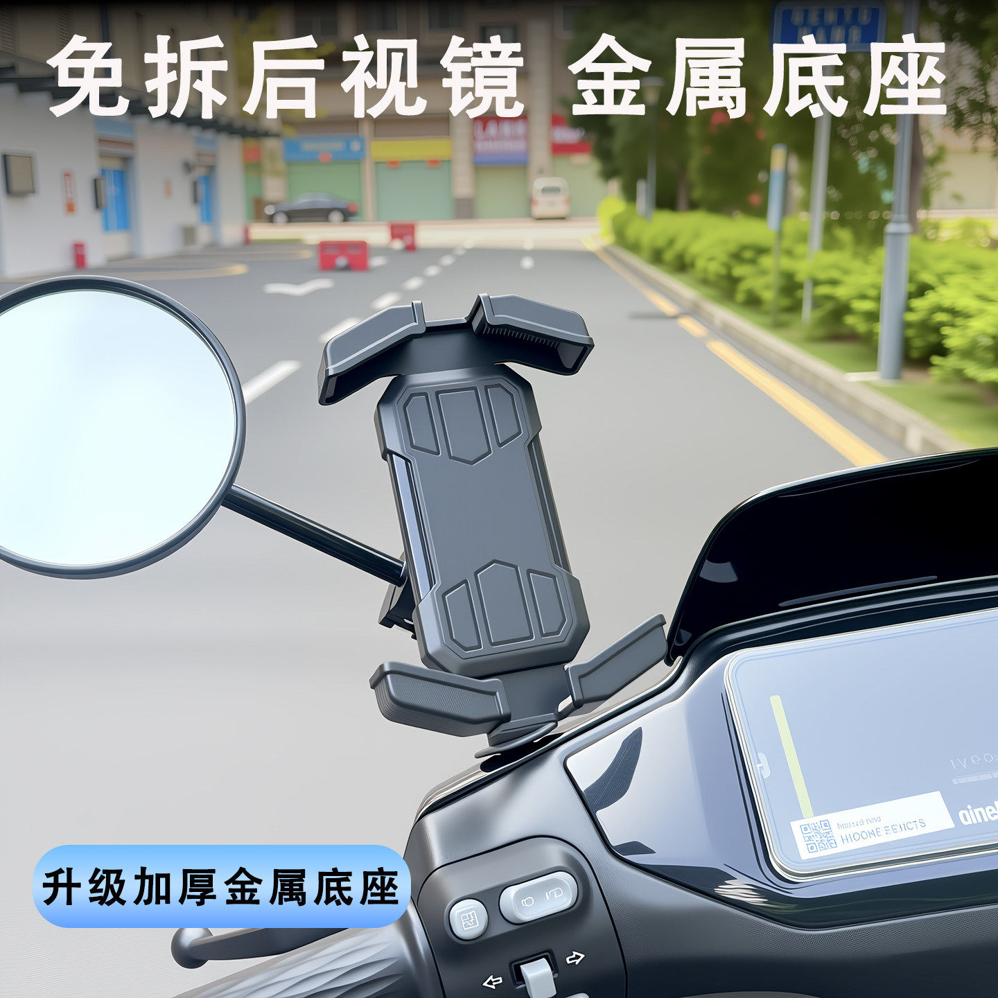 骑行防震防抖自行车摩托车后视镜手机支架外卖骑手电动车导航支架
