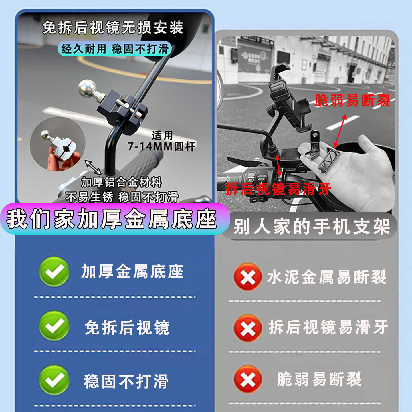 摩托电瓶车电动踏板车自行车手机架代驾防震美团外卖骑手导航支架