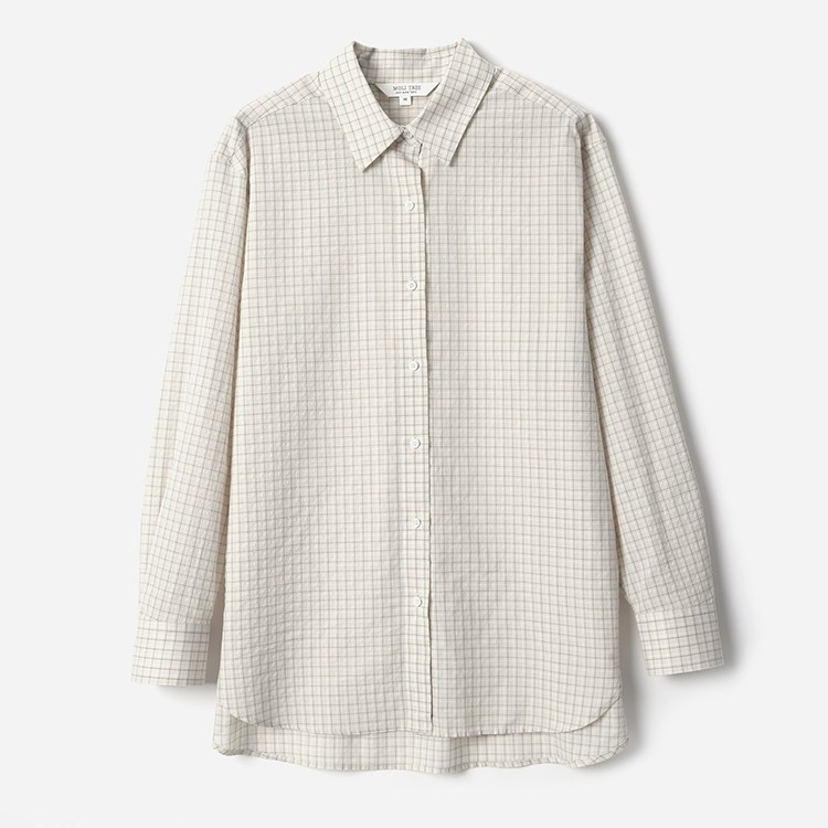 WCS09024 复古格纹宽松廓形下摆交叉翻领长袖 衬衫 女 茉莉雅集由