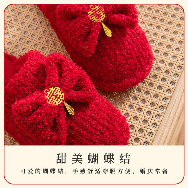 喜庆红色高档新郎新娘结婚秋冬季 情侣陪嫁四季 居家婚庆拖鞋 棉拖鞋