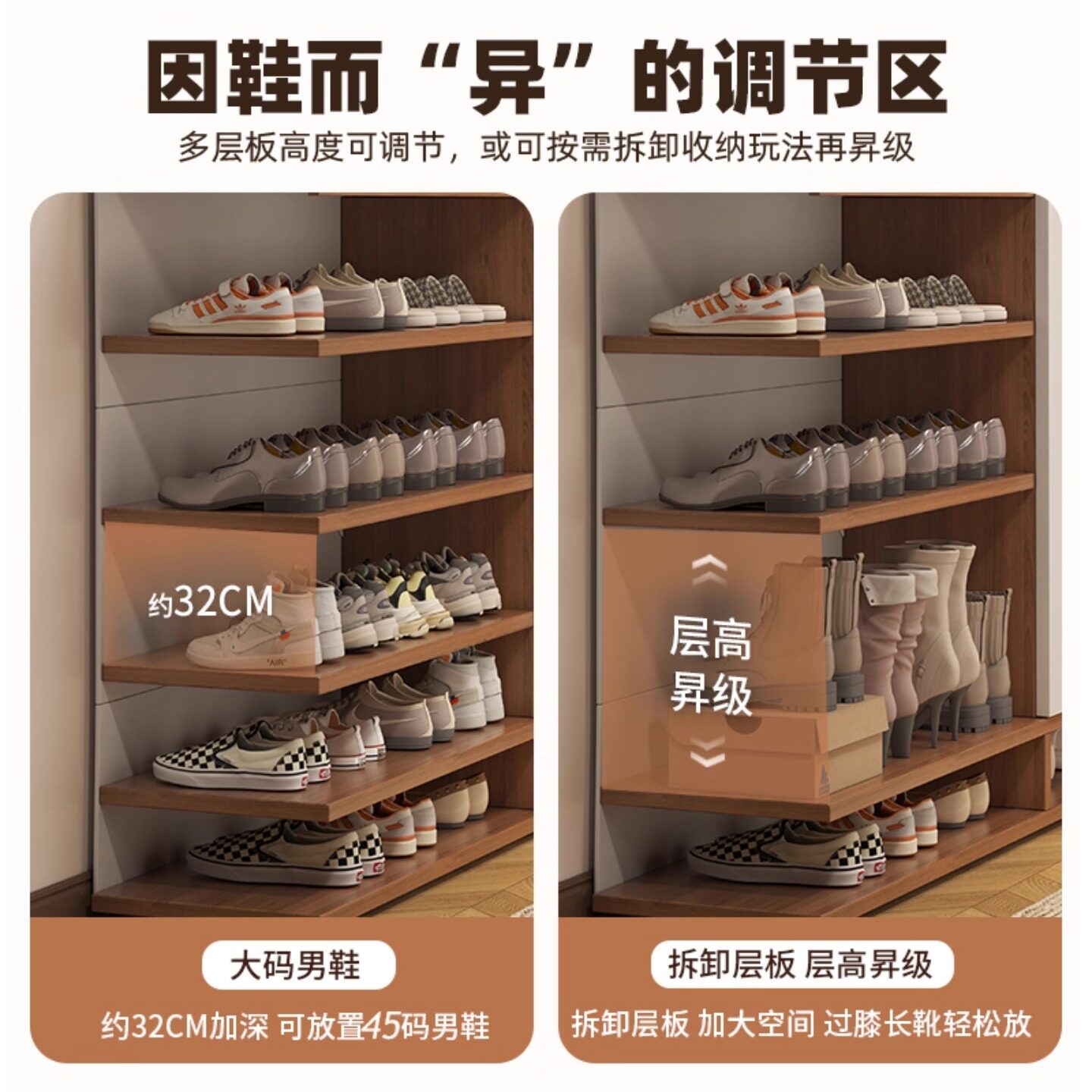 懒角落鞋 柜托架分双层隔板省空间柜内置叠放可调节 子收纳架神器鞋