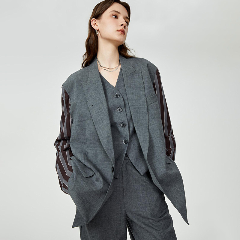 V领修身 西湖阁老 兹 春装 开叉百褶半身裙221 马甲组合由