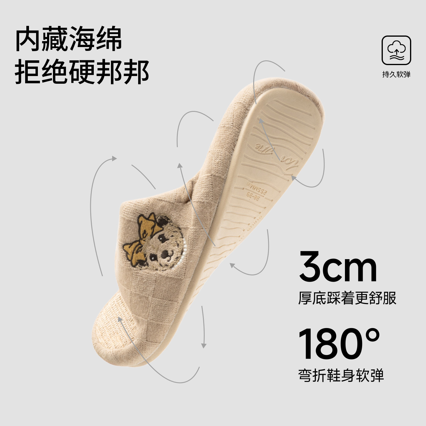 女春秋款 吸汗脚亚麻卡通可爱办公室内居家地板 通用棉麻布拖鞋 四季