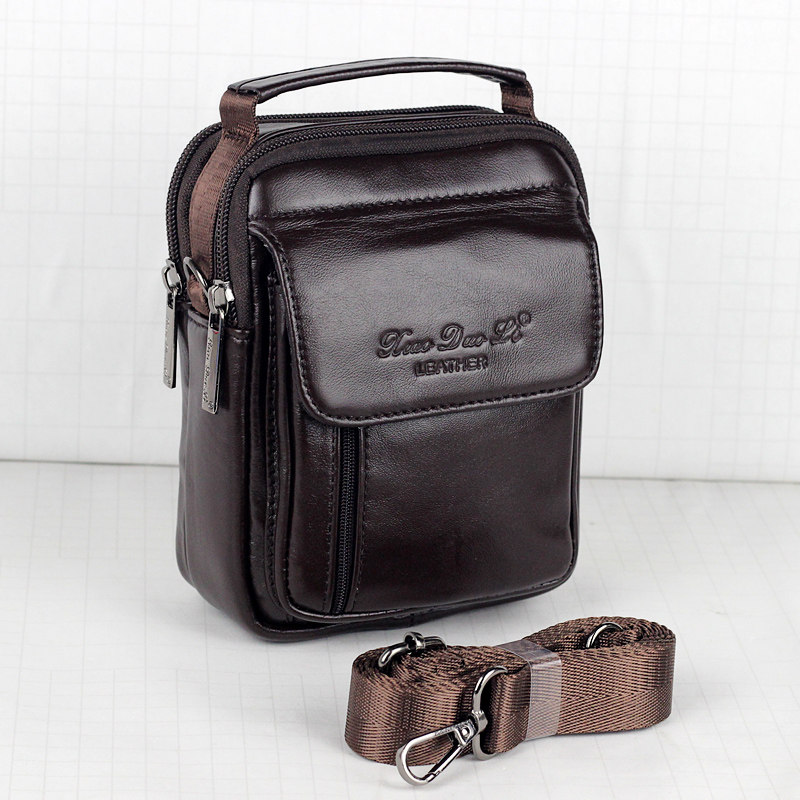 迷你手提包真皮斜挎包穿皮带腰包手机包头层牛皮单肩斜挎小包 男士由